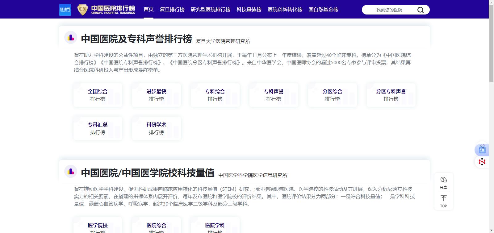 最新年度复旦版中国医院排行榜