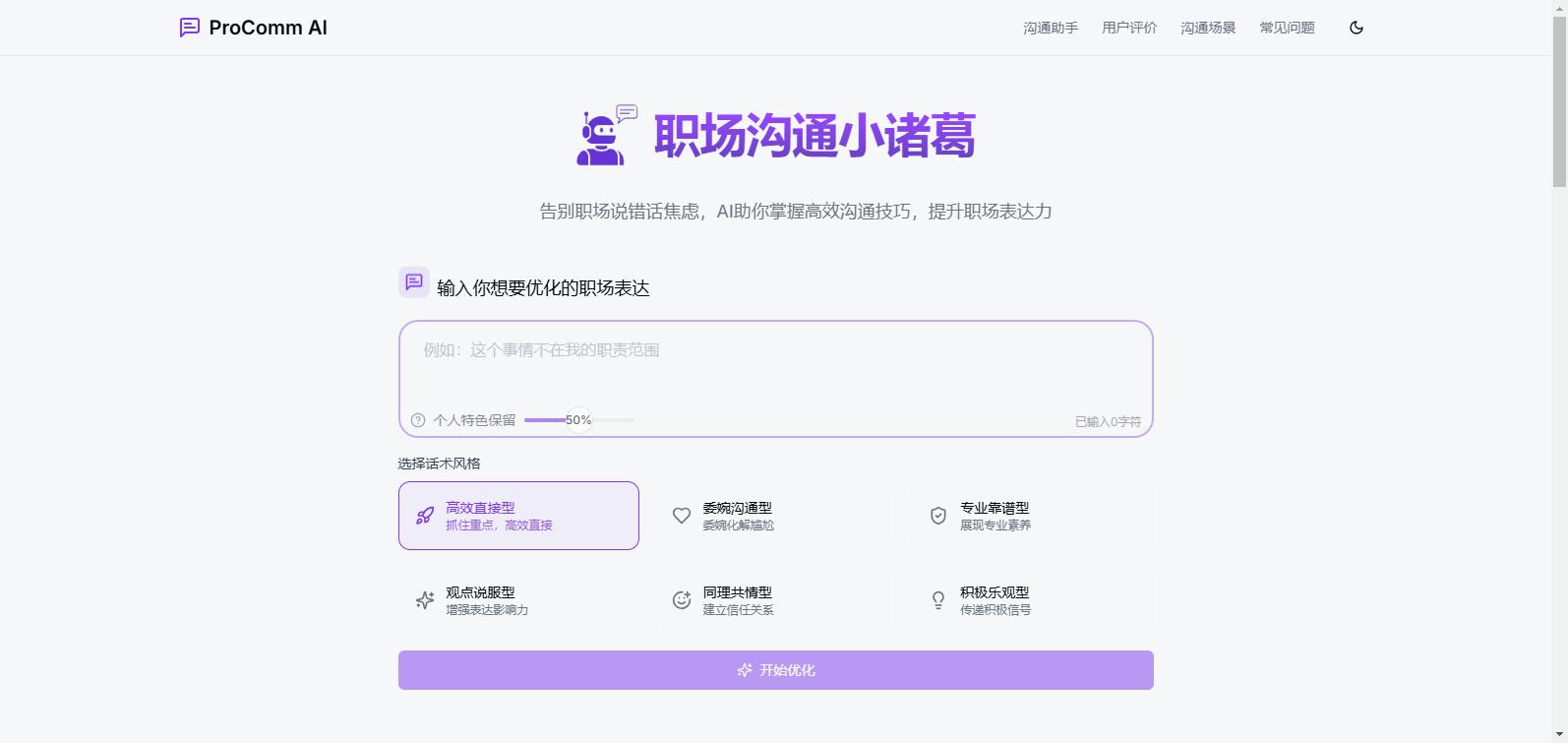 Procomm AI。这是一个专注于人工智能驱动的专业沟通辅助平台,旨在帮助用户提升写作、翻译和内容优化效率。作为一款领先的AI工具,Procomm AI 在2025年已成为许多专业人士的首选,尤其在商务、学术和创意领域广泛应用。以下是我的介绍,我将从核心功能、适用场景、技术优势和使用方式四个方面展开,确保内容简洁、信息丰富且易于阅读(控制在5个要点以内)。如果您需要更深入的细节,我可以进一步补充。