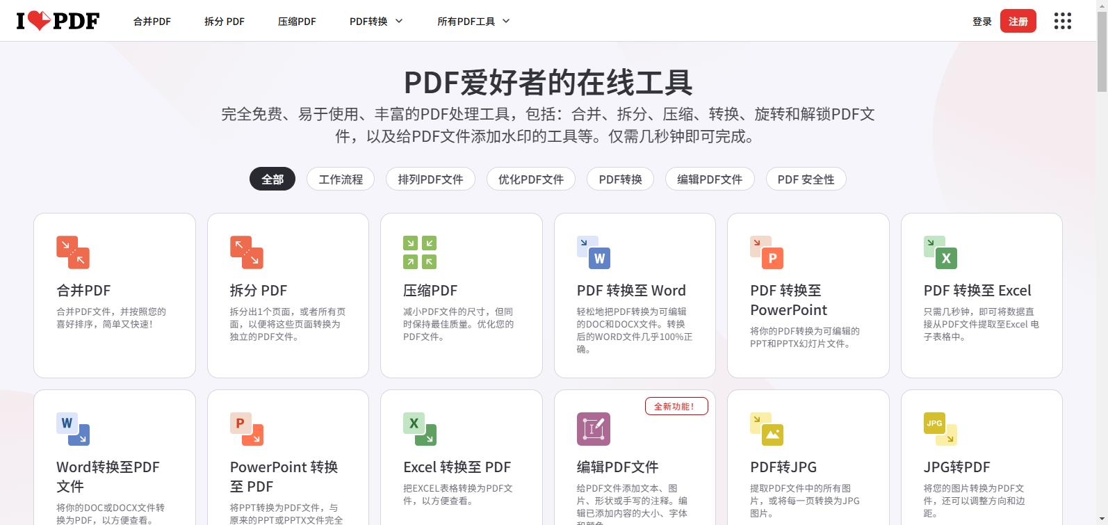 iLovePDF 是一个免费、在线的PDF处理工具集合,主打“无需安装、跨平台操作、用户友好”的特点。用户可直接通过浏览器完成各类PDF操作,无需注册即可使用基础功能(部分高级功能需登录),特别适合临时性、轻量级的文档处理需求。