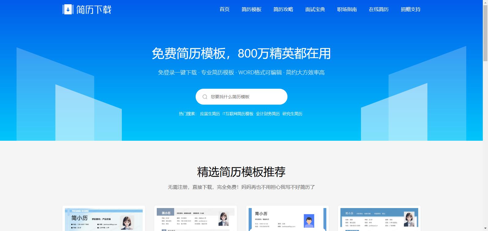 - 简历模板下载: 这是网站的核心服务。它收集并提供大量不同风格、行业、职位和格式(如 Word 的 .doc/.docx 文件, PDF 等)的简历模板供用户免费或付费下载。