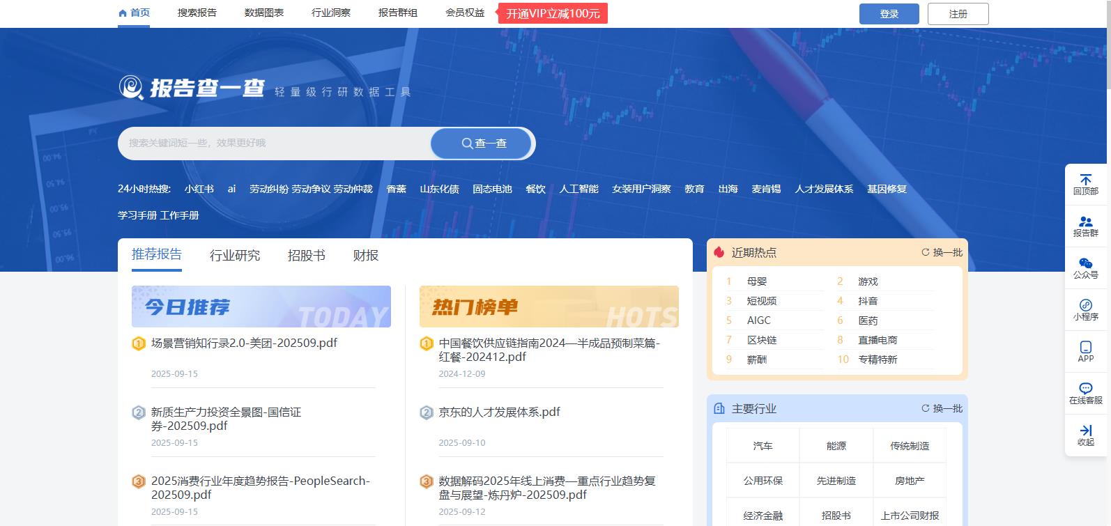 报告查一查是一款轻量级的行业研究工具,致力于帮助用户快捷、低成本的获取行业数据,提供覆盖全网机构、券商、宏观策略、上市公司等的数据分析报告。